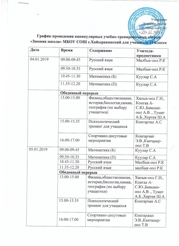 План мероприятий по организации и проведению зимних каникул с 28 декабря по 11 января.