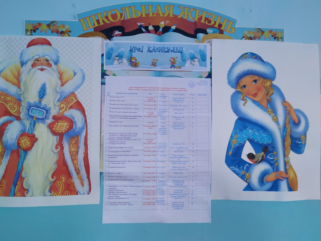 План работы во время зимних каникул