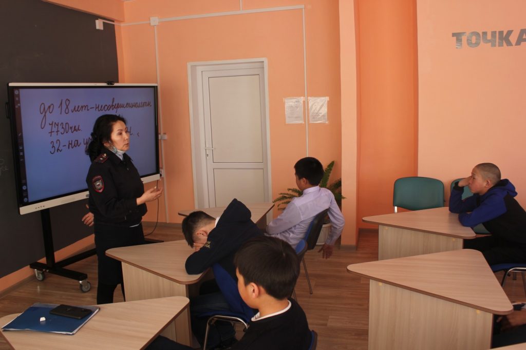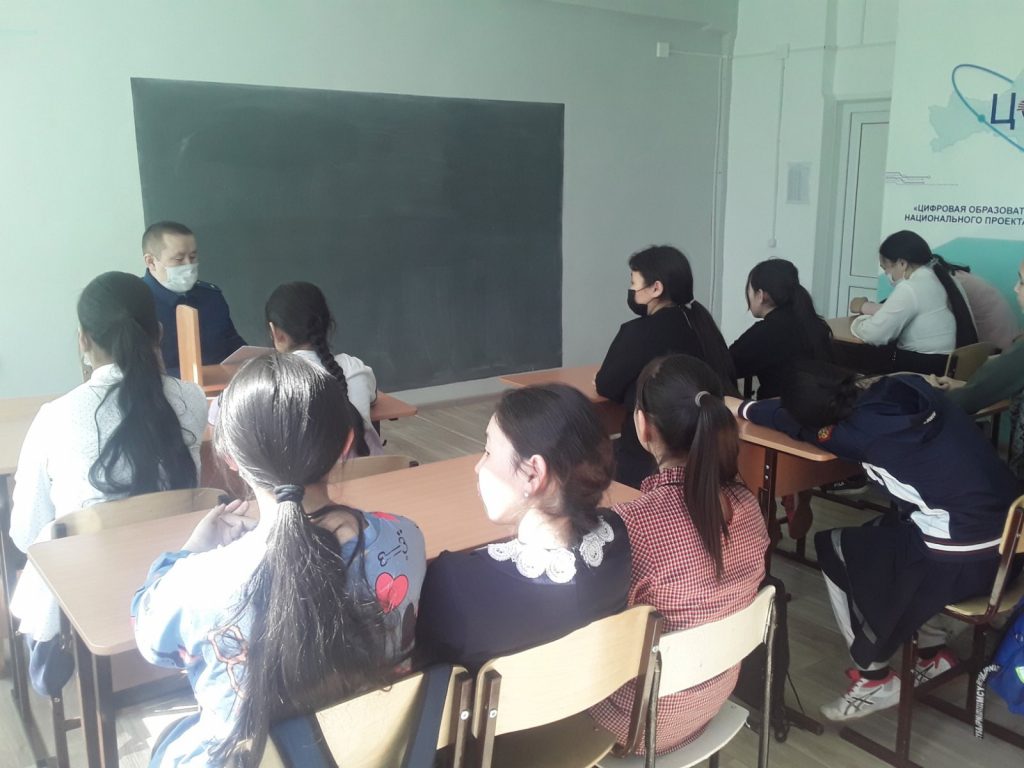 В целях профилактики правонарушений несовершеннолетних 6 апреля 2021г состоялась встреча учащихся старших классов с старшим помощником прокурора Улуг-Хемского района Даржаа А.А., старшим инспектором ПДН, майор полиции Адыг-Тюлюш И.Б.,ведущим специалистом Улуг-Хемского районного суда Сюмбур Н. В.. Встреча проводилась в кабинетах ЦОС и Точка Роста. На встрече до подростков доведена информация об уголовной и административной ответственности несовершеннолетних за совершение уголовно-наказуемых деяний и административных правонарушений. В ходе встречи на конкретных примерах учащимся разъяснены основные принципы уголовного закона, в том числе о неотвратимости наказания. Обучающимся были разъяснены нормы уголовного и административного права, разъяснён состав уголовного и административного правонарушения, порядок привлечения несовершеннолетних граждан к административной и уголовной ответственности. В ходе проведения встречи подросткам разъяснялась необходимость соблюдать общественный порядок, уважать права иных лиц, и не допускать хулиганских действий, распитие пива и иных спиртных напитков, как в общественных местах, так и в быту, не совершать преступлений и иных правонарушений. Одновременно несовершеннолетним указывалось на необходимость руководствоваться в своих действиях нормами закона и морали, необходимости продолжения обучения и ведения здорового образа жизни.