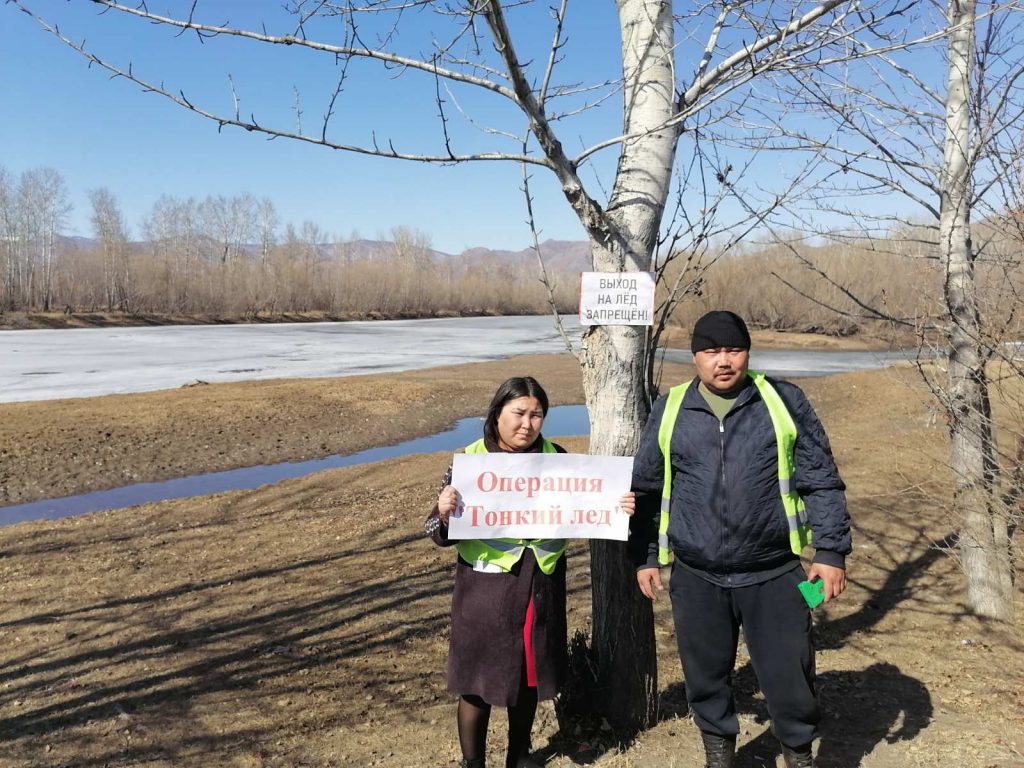 В рамках профилактической акции «Безопасный лед» педагог-организатор ОБЖ Аракчаа Ч.А., инспектор ПП Тюлюш Н.С., социальный педагог Кара-оол Ч.В. провели рейд на водоёмах по выявлению излюбленных, но опасных мест выхода на лёд, дополнительно выставили запрещающие знаки. Уважаемые односельчане и гости нашего села, помните, ранний лед опасен для жизни! Не выходите на водоемы!