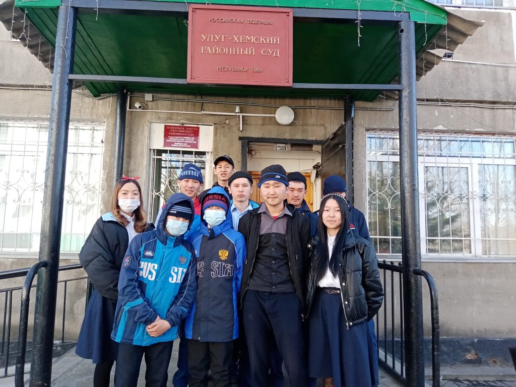 5 апреля состоялась встреча с работниками Улуг-Хемского районного суда. В ходе встречи старшеклассники узнали о формах взаимодействия суда с Федеральной миграционной службой, службой судебных приставов, о самых распространенных случаях нарушения закона. Также старшеклассникам напомнили об административной ответственности за ряд нарушений.Ученики нашей школы присутствовали в судебном заседании. Им было очень интересно наблюдать за происходящим процессом.