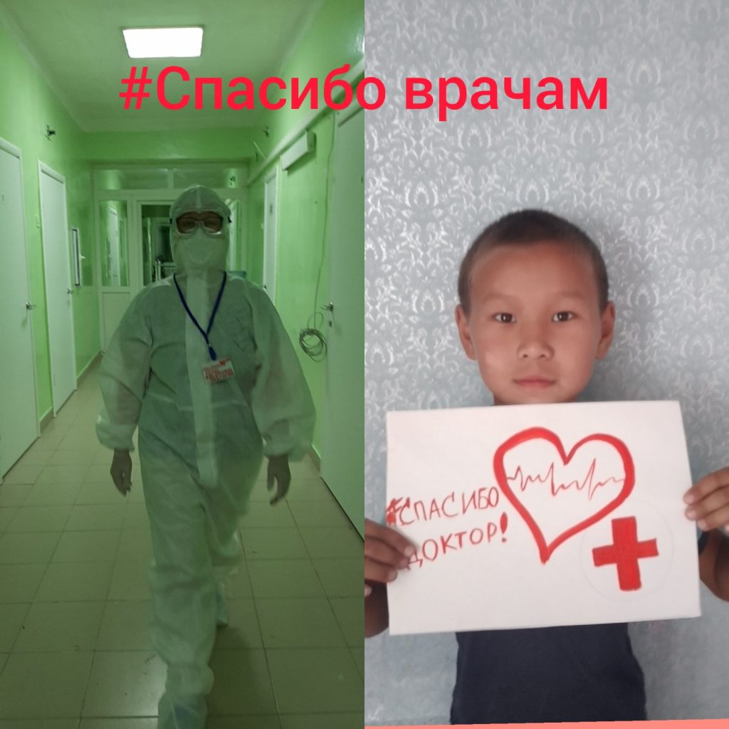 Ученик 1 «б» класса Иргит Менги присоединяется к акции «Спасибо врачам».