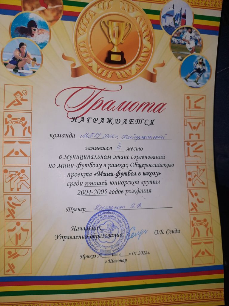 В результате захватывающих футбольных матчей были выявлены победители: второе место заняли футболисты нашей школы (руководитель Конгаржап Э.В.). Победители соревнований были награждены медалями и грамотами.