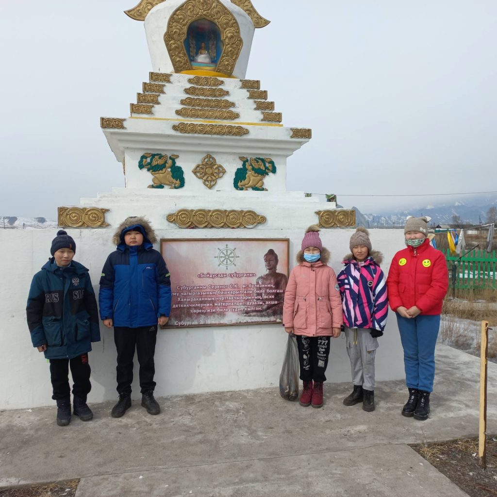 По плану классного руководителя 5 «Б» класса была проведена экскурсия с элементами беседы «Субурган, оберегающий наше село». В конце ребята провели небольшую очистку территории ступы (субургана).