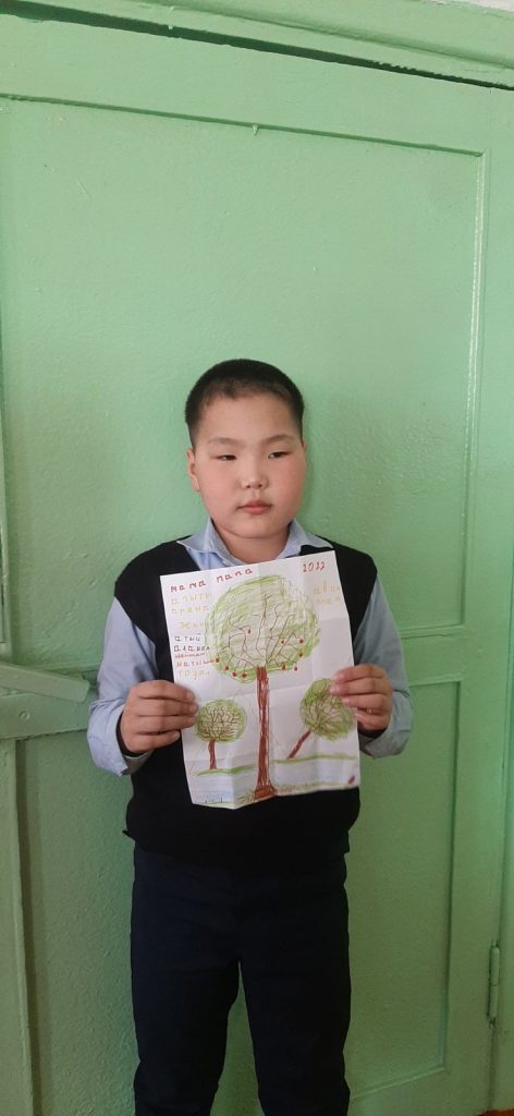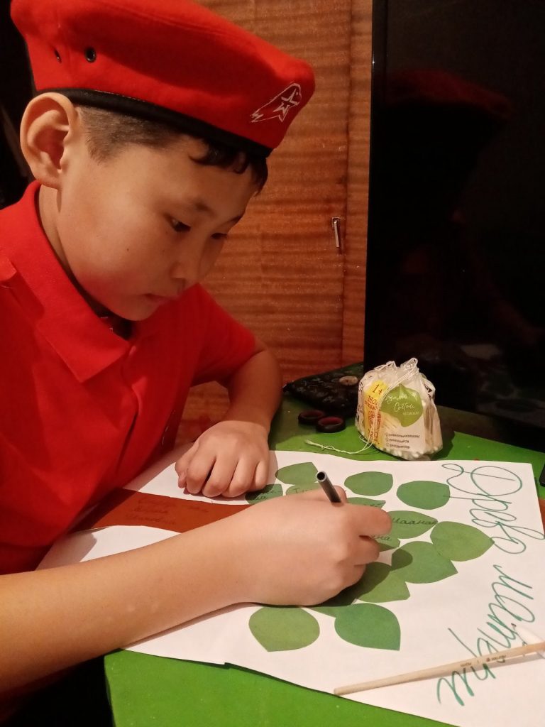 Юнармеец 5 «Б» класса Сендир-оол Сухбад участвует в конкурсе рисунков «Древо о матери».