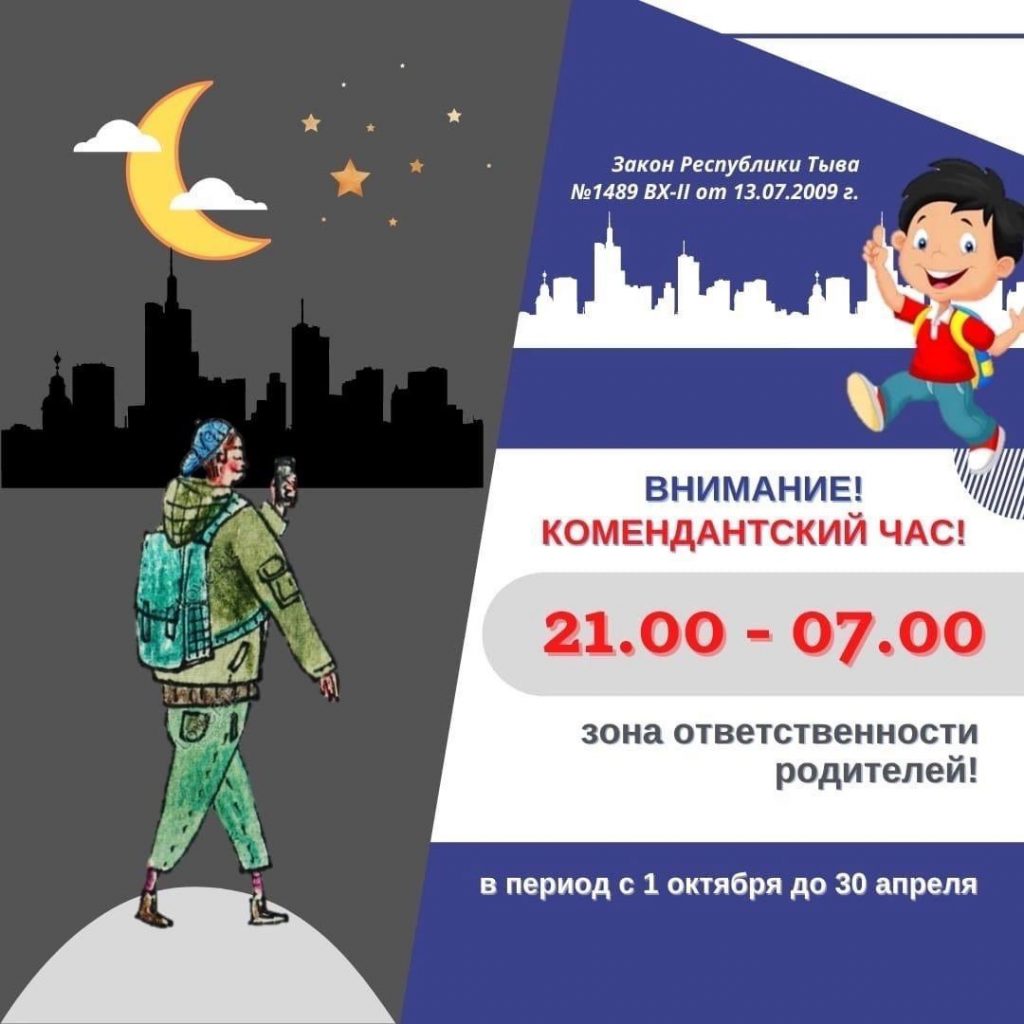 Минобразования Тувы напоминает, что Закон Республики Тыва от 13.07.2009 №1489 ВХ-II предусматривает действие «комендантского часа».