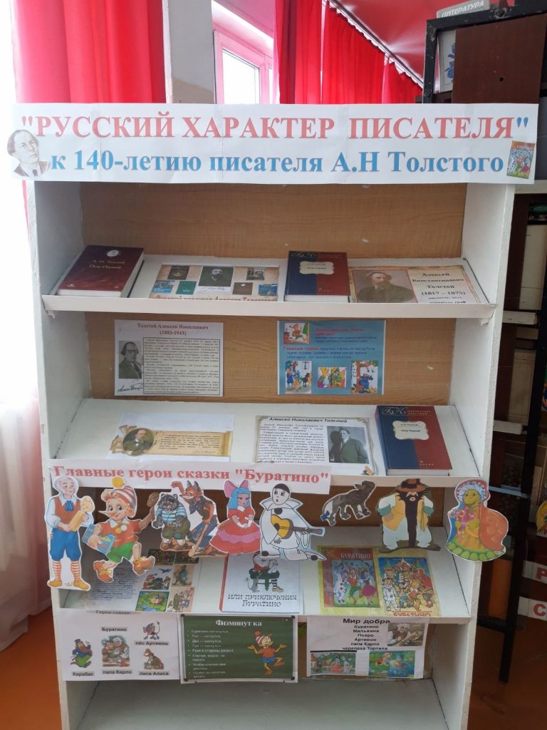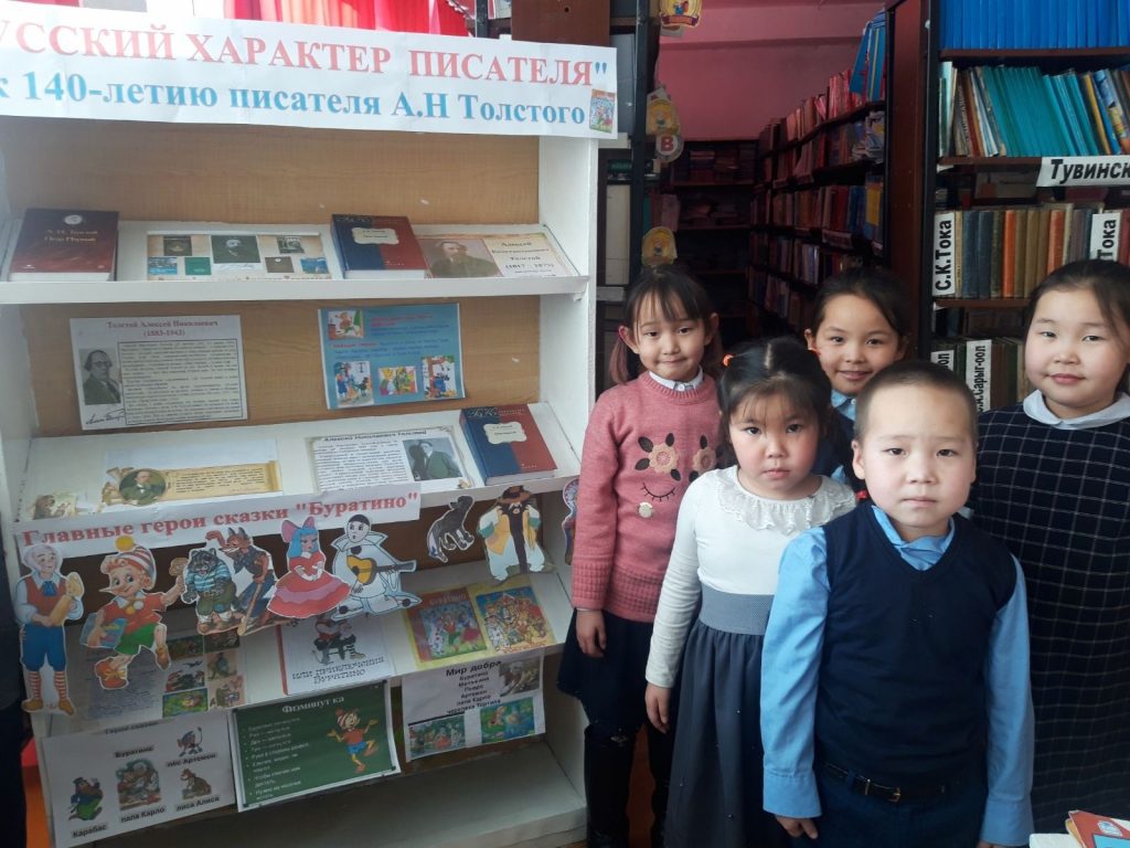 В школьной библиотеке проведена книжно-иллюстративная выставка «Русский характер писателя», посвященная 140 — летию со дня рождения Алексея Николаевича Толстого, российского писателя, драматурга. Охват 38 учащихся. Педагог-библиотекарь Айыр- оол Ш.В