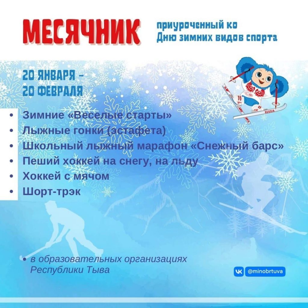 С 20 января по 20 февраля 2023 года в образовательных организациях республики пройдет Месячник, приуроченный ко Дню зимних видов спорта.