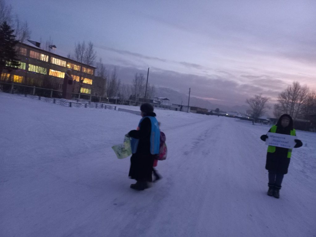 В целях профилактики детского дорожно-транспортного травматизма, привлечения внимания общественности к проблеме обеспечения безопасности дорожного движения детей-пешеходов на утренний рейд охвачен 10 родителей: 5 родителей из 4 «Б» класса с классным руководителем Ендан Ч.С и 5 родителей из 5 «А» класса с классным руководителем Ендан С.С