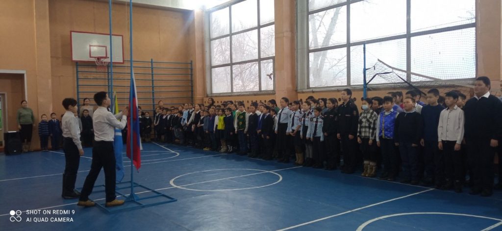 Учебная неделя началась с поднятия государственных флагов Российской Федерации и Республики Тыва. Право поднять государственных флагов РФ и РТ предоставлен учащимся дежурных классов.