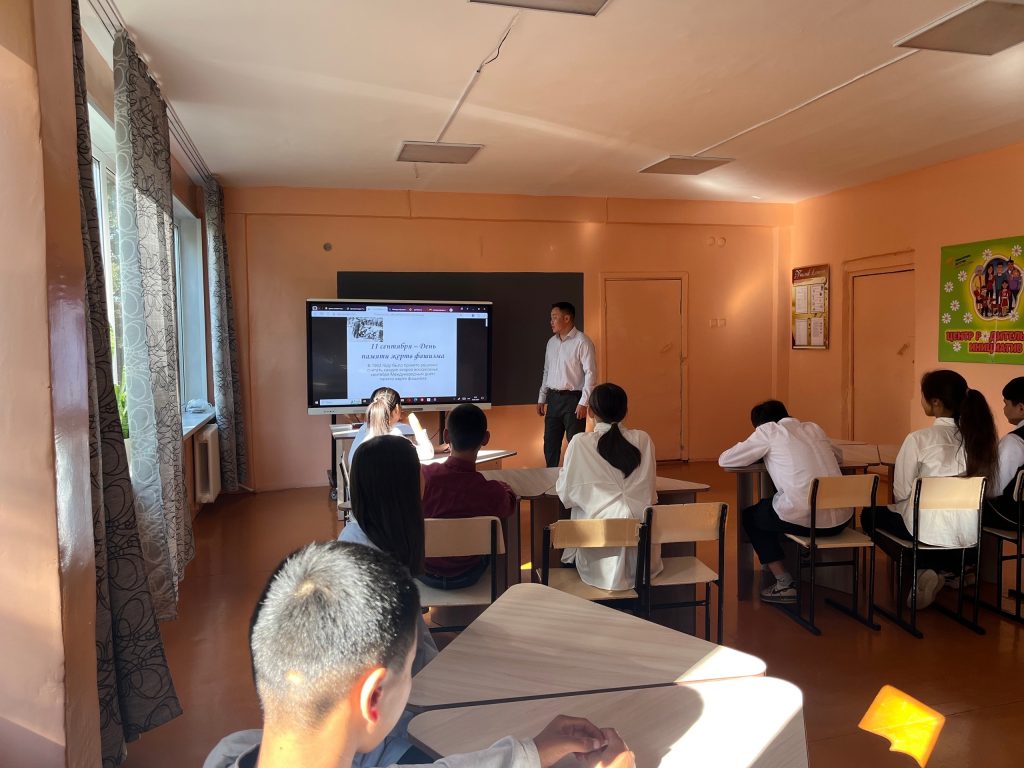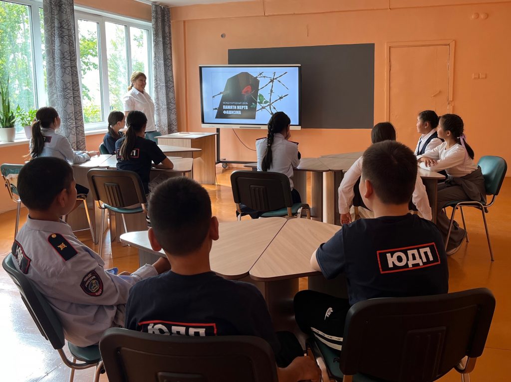 В честь Дня памяти жертв фашизма советник директора по воспитанию Ч.О.Ховалыг провела для ребят Урок Мужества «Павшим-честь,живым-предостережение» для обучающихся ДОО -ЮДП и юнармейских отрядов с показам видеоролика «Вечная память жертвам концлагерей»