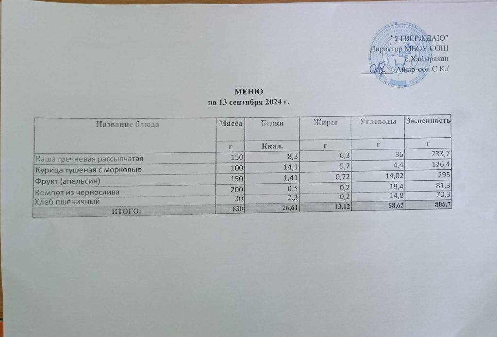 Сегодня 13 сентября 2024 года родитель 2 б класса проверила организацию питания детей в школьной столовой. Особое внимание обратила на выполнение санитарно-гигиенических требований. Родитель проверила качество организации питания в соответствии с чек-листом общественного родительского контроля: ученики соблюдают правила личной гигиены, имеют условия для мытья рук, санитарно-техническое состояние обеденного зала нормальное ( посуда без сколов, обеденные столы чистые, без видимых повреждений), имеется график приема пищи, вывешено ежедневное меню, выставлено контрольное блюдо. В меню отсутствуют запрещённые продукты. От всех партий блюд снимается бракераж. Имеется журнал бракеража сырой продукции. Родитель посмотрела, как осуществляется накрытие столов, оценила внешний вид горячих блюд, попробовала гречневую кашу, курицу тушенную с морковью, компот из чернослива, хлеб пшеничный, апельсин отметила, что приготовленный завтрак вкусный, полезный. Также проведен осмотр отходов пищевой продукции. В книге проверок родитель написала положительный отзыв.