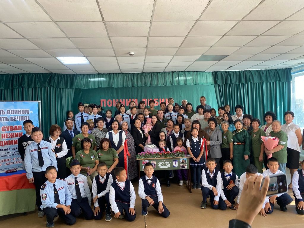 В память о сыне мать Героя Зоя Седип-Доржуевна оснастила кабинет русского языка и литературы школьным инвентарем в виде парт и стульев.